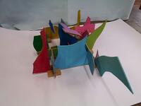 切った角材を,うすい板でつなぎ,動く仕組みを生かした,作品づくりをしました。