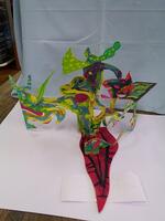 ローラーの使い方を工夫して,線や模様を描き,そこから作品を想像して,付け加え仕上げました。