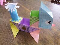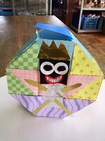 紙の箱に,飾りをつけて、楽しく変身させました。