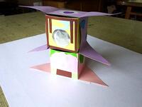 硬さや光の透け方の違う白い紙をカットしたり,重ねたりして,光が美しく透けるあかりを作りました。