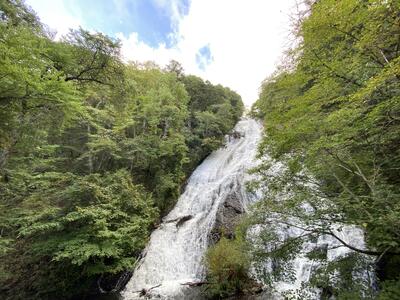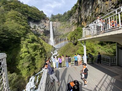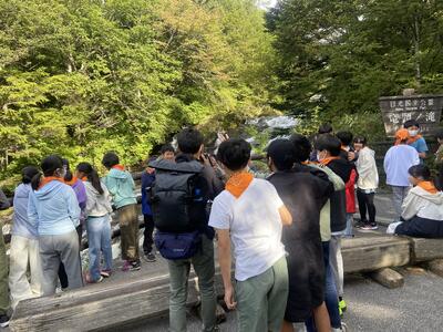 朝のハイキングを兼ね,竜頭の滝を見学しました。バスガイドさんに日光の滝や湖について教えてもらいながら,華厳の滝に向かいました。子ども達は,虹のかかった迫力ある滝に感動していました。
