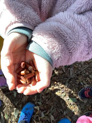 どんぐりにも大きさや種類があり,楽しそうに見つけることができました。