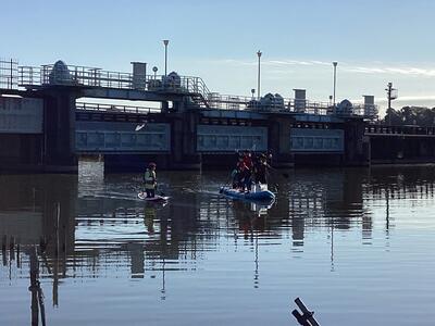 21日の午前中は,5つのグループに分かれ,農家の収穫体験や灯篭作り,野鳥観察,ニジマス釣り,SUPなど,普段できない体験活動を通じ,手賀沼周辺の環境やSDGsに繋がる考え方に触れることができました。