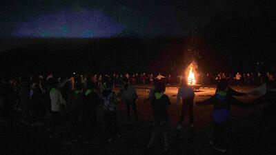 手賀の丘青少年自然の家で夕食を済ませた後はキャンプファイヤーを行いました。