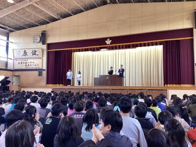 校長先生より,3学期は新しい目標をもって,次年度に向けて笑顔いっぱい学校生活を送ってほしいとの話がありました。