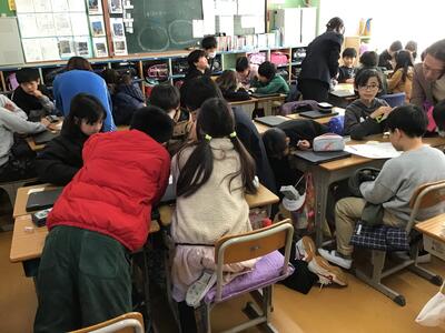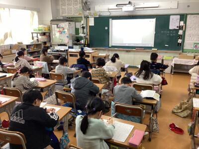1月26日(金),社会科学習の一環で,昔の道具の体験をしました。教育委員会の文化課の方が来校し,昔の道具の説明を詳しくしてくださったり,持ってきてくださった道具を実際に触れさせていただいたりしました。昔の方々の工夫に子どもたちはとても感心していました。