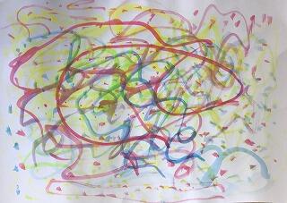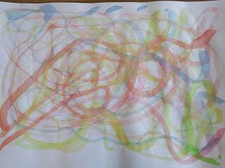 絵の具と水の量を調節しながら,色や筆の動きを自由に楽しんで描きました。