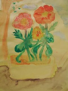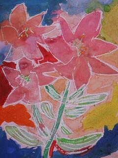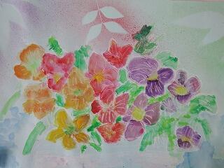 春の風や雰囲気を感じたり、季節の花を見てスケッチをしたりして、クレヨンと絵の具で,花を中心に描きました。