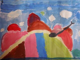 絵の具の使い方を練習しながら、自由に想像をふくらませて、絵の具で島を描きました。