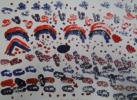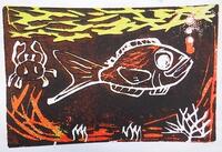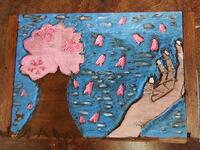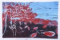 一枚の板を、彫っては刷り、彫っては刷り、彫っては刷りと色を3回重ねて刷り仕上げました。どのようになるのか予想がつかないので、ドキドキとワクワクが、入り交ざって作品が仕上がりました。
