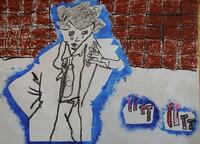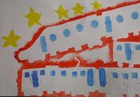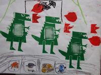 型紙を使って、ローラーで形を写しました。形から想像して、クレヨンで描き込みもしました。