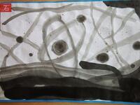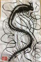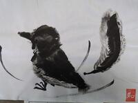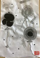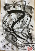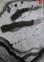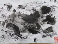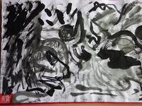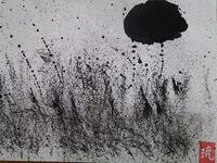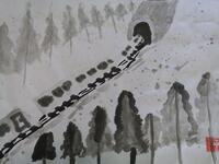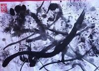 墨を墨色を変え、技法を使って、絵の具で描くように和紙にかきました。