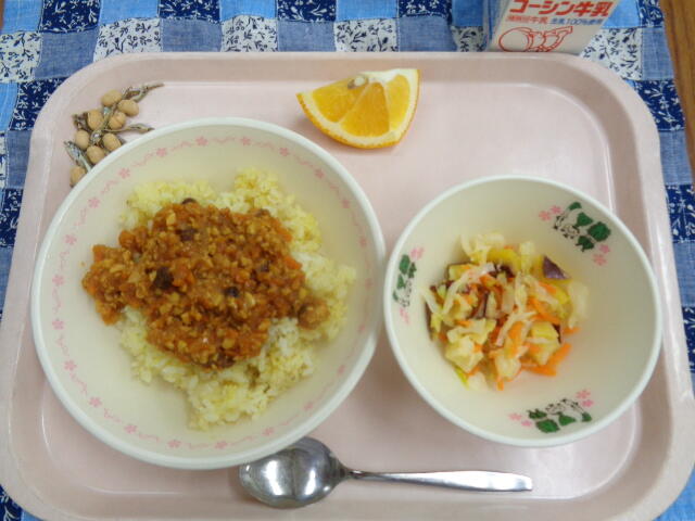 一覧へ ドライカレーライス 日時 2023年05月15日(月) 公開対象 給食室~今日の給食 詳細 牛乳 ドライカレーライス さつまいもサラダ 甘夏みかん 大豆小魚 <給食メモ> 今日のカレーはひき肉を使った ドライカレーです。 カレー味をさらに引き立てる甘みとして、干しぶどうを 入れました。よく噛むことを意識して 食べましょう。 サラダに入れたさつまいもは、千葉県産のおいもです。 角切りにしたものを 蒸して使いました。 作成者 柏第五小学校管理者 更新日時 2023-05-15 13:07:10
