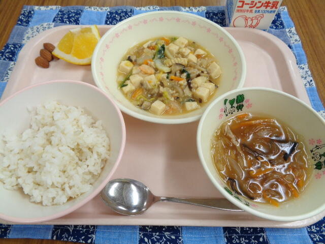 一覧へ 豆腐の中華煮 日時 2023年05月23日(火) 公開対象 給食室~今日の給食 詳細 牛乳 ごはん 豆腐の中華煮 春雨スープ みしょうかん 粒アーモンド <給食メモ> 今日は具がたっぷり入っている 豆腐の中華煮を作りました。 気温が急に下がりましたので、体調管理に気をつけましょう。 食事をしっかり食べている人は、体力もあり体調をくずすことが 少なくなります。好き嫌いで食事を選ぶのではなく、自分の 健康のために 何でも食べることを 忘れないでください。 作成者 柏第五小学校管理者 更新日時 2023-05-23 11:36:31