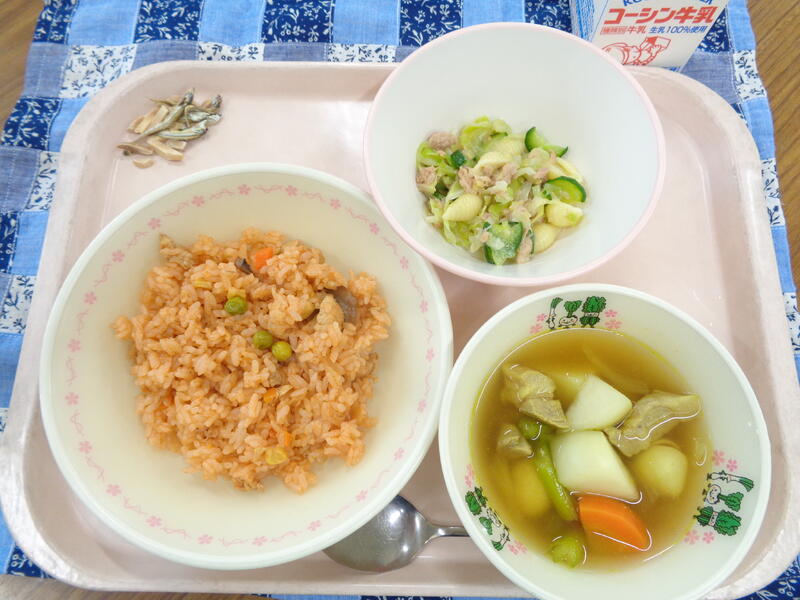 一覧へ チキンライス 日時 2026年01月14日(水) 公開対象 給食室~今日の給食 詳細 牛乳 チキンライス マカロニサラダ カレー味のポトフ 小魚アーモンド <給食メモ> 今日は、ケチャップ味で仕上げた「チキンライス」が主食です。 「ポトフ」はフランスの料理で、いろいろな食材を入れて作る 煮込み料理のことです。やわらかく煮込んだ豚肉と野菜に 今日はカレー粉を入れて味を整えました。サラダのマカロニは、 貝の形をした「シェルマカロニ」を使いました。 作成者 柏第五小学校管理者 更新日時 2026-01-14 11:31:43