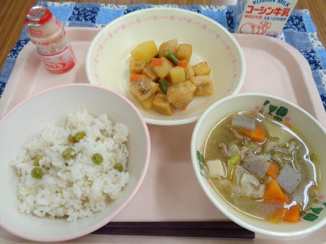 一覧へ ピースごはん 日時 2023年05月17日(水) 公開対象 給食室~今日の給食 詳細 牛乳 ピースごはん 高野豆腐と白身魚の揚げ煮 豚汁 乳酸菌飲料 <給食メモ> ごはんに入れたグリンピースは、「さや」に入っている ものを買って、2年生のみなさんに「さや」の中から 豆を取り出してもらいました。ごはんの上に豆をのせて炊いた ピースごはんは、2年生のみなさんの協力のおかげでできました。 他の学年のみなさん、感謝していただきましょう。 作成者 柏第五小学校管理者 更新日時 2023-05-17 11:38:41