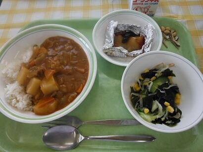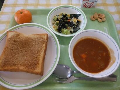 牛乳・ドライカレーライス・かぶとポテトのスープ・かき・アーモンド小魚