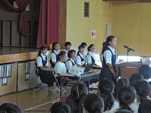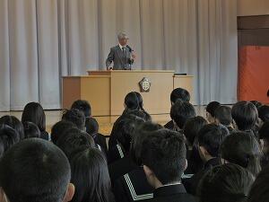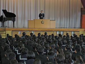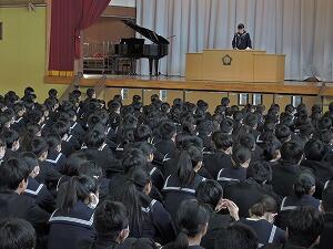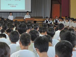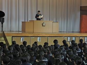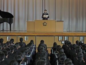 校歌斉唱に続き、学年代表の生徒からの話がありました。
