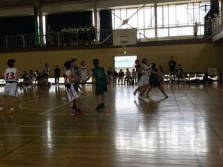 本日、本校で柏市新人戦バスケットボール大会が行われています。本校女子バスケットボール部は一回戦で西原中学校に勝利した松葉中学校と対戦中です。現在第三クォーターの途中で63-16でリードしています。
