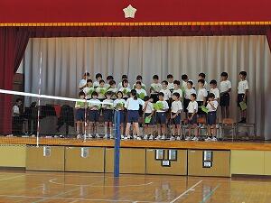 生活面では、以前に比べて大きな声であいさつをすることができるようになってきました。また、給食の配膳も一学期に比べて早くなりました。
