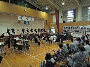 本日文化の日、毎年恒例の「高田・松ヶ崎地域文化祭」が行われ、本校吹奏楽部が参加しました。演歌メドレーでは、吹奏楽の伴奏に合わせ地域の方が熱唱されて、大盛況でした。