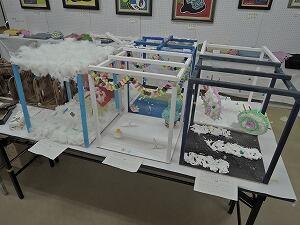 また、美術部や家庭科、技術科、柏葉祭合唱曲のイメージ画等、多くの作品を出品し、地域の方々に見ていただきました。