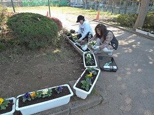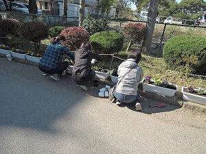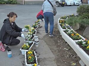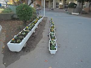 本日、PTA環境委員さんが、正門付近のプランターの植え替え作業を行いました。冬の花壇には定番のパンジーとビオラ、450株を手分けして植えていただき、正門前の坂道も華やかになりました。