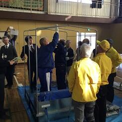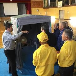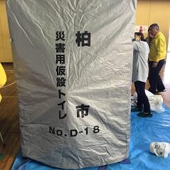 柏市防災安全課から講師を招き、地域の方々や地域の小学校職員、本校職員で研修を行いました。避難所になった場合の「簡易トイレ」作りの実習を行い、その後、防災についての講義を受けました。