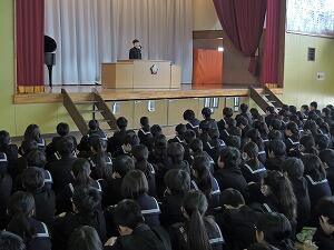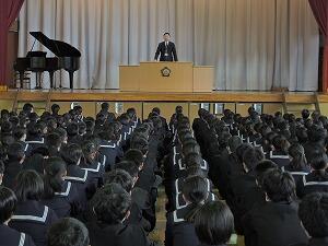 3年生は12日、13日に、いよいよ公立前期入試を迎えます。本日6校時に、受検時の心構えや持ち物等について確認を行う集会が行いました。皆、やや緊張した面持ちで話を聞いていました。