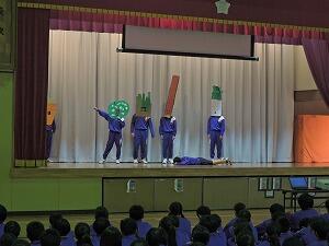 2年生の給食委員は、野菜を食べることの大切さを劇で表現しました。