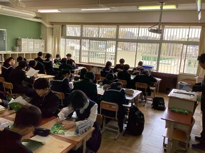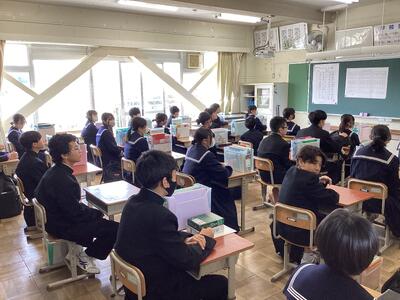 今回は発表の完成度を上げるために、細かな動きを確認しています。学年での合唱に苦戦しつつも、3年生のために一生懸命歌う姿が見られました。練習を見ていた先生からは「ブレスをパートごとに合わせてみよう。」とアドバイスをいただき、そろえて歌い出すことができるようになりました。本番までの登校日は5日。素晴らしい合唱を3年生に届けるため、練習に励みます。
