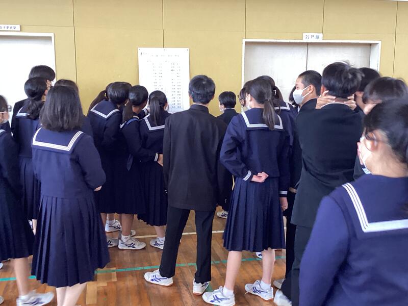 新2年生はクラス替えもあり、体育館で新クラスが発表されました。