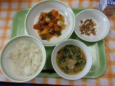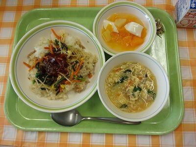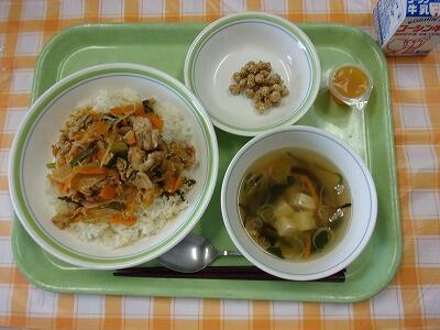牛乳 中華丼 キムチスープ ゼリーポンチ 大豆小魚