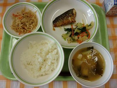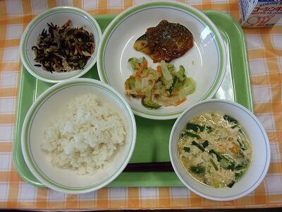 牛乳 ご飯 鯖のごまみそ焼き 磯香和え じゃがいものきんぴら煮 かきたま汁