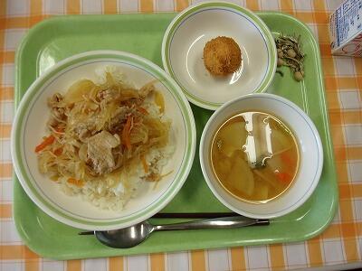 牛乳 豚丼 かぶのみそ汁 いがぐりぼうや 大豆小魚