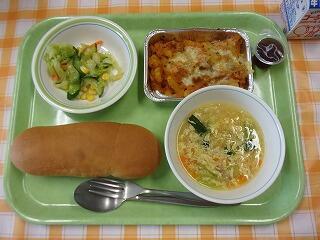 牛乳 コッペパン ポテトミートグラタン コーンサラダ 洋風たまごスープ ひとくちぶどうゼリー