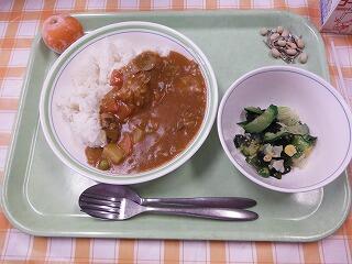 牛乳 チキンカレーライス ひじきと青大豆のサラダ 黄桃缶 大豆小魚