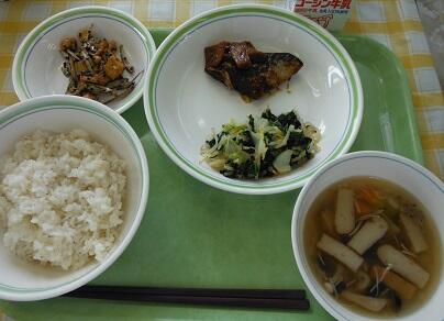 牛乳・白飯・さばの味噌煮・ほうれん草のお浸し・たぬき汁・ミルクかりんとう