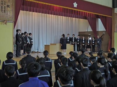 引き続き行われた始業式では、2.3年職員と全校に関わる先生方の紹介がありました。