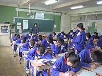 入学式に続く学活では、担任に自己紹介や明日からの予定に、熱心に耳を傾けていました。