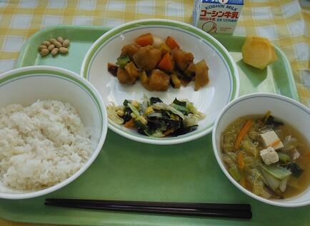 本日の給食(鶏肉と大豆のトマト煮)