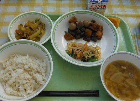 本日の給食(豆入り筑前煮)