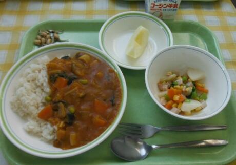 牛乳・柏野菜のカレーライス・柏野菜のサラダ・りんご・大豆小魚