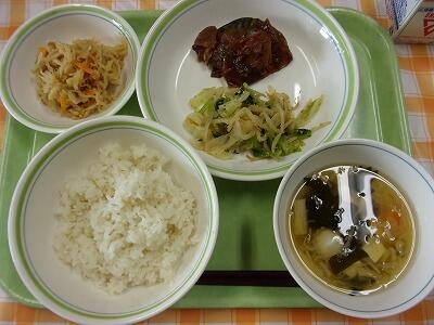 牛乳 ご飯 鰯の蒲焼き アーモンド和え 大豆の磯煮 豚汁