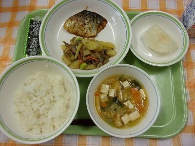 牛乳 ご飯 さばのみそ煮 ごま和え さといものしっぽく煮 たぬき汁