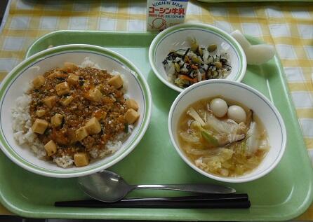 本日の給食(麻婆豆腐丼)