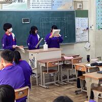 次に、自分の班で考えた企業をクラスでプレゼンテーションをします。限られた時間の中で、自分たちの企業の魅力を伝えるために入念に準備をしていました。