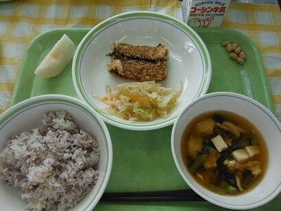 本日の給食(さんまの蒲焼き)