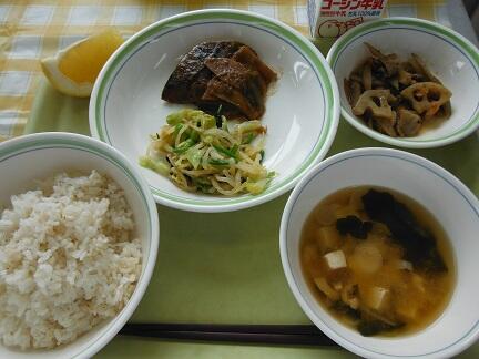 牛乳・白飯・さばのゴマ味噌煮・辛子和え・五目きんぴら・