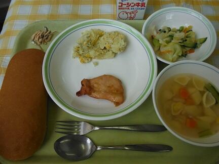 牛乳・ソフトフランスパン・鶏肉のマーマレード焼き・コーンポテト・